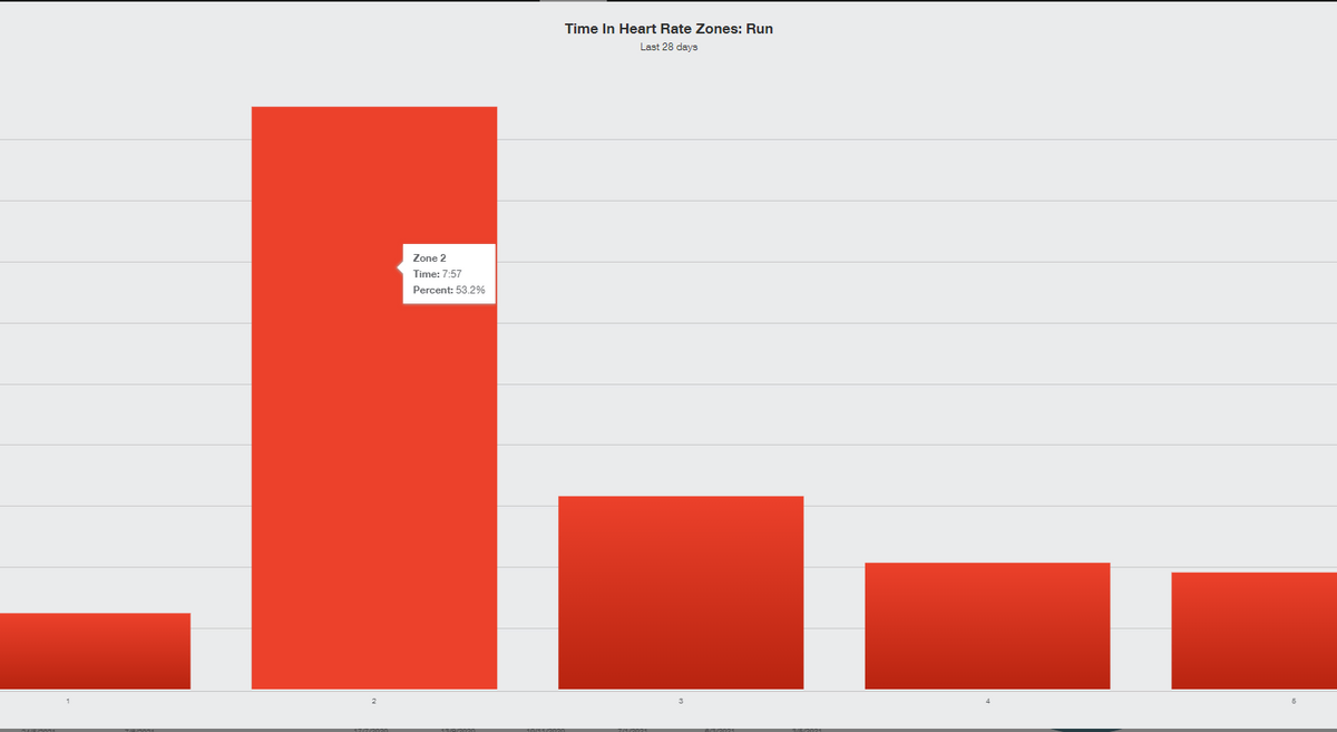 Assuming your training zones are set up correctly, you can look at what percentage (%) of your training you’ve spent in each zone.